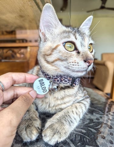 "Great quality and very well made. The breakaway buckle gives me peace of mind, and the collar looks adorable on my cat. I also love the mission behind Stylish Whiskers.”